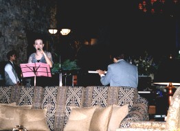 歌い始めました。ピアノの演奏者も外国から来た人でした。私達が入ったときには一組しかいなかったお客さんも少しずつ