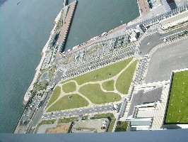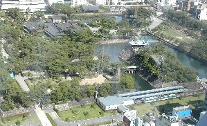 シンボルタワーの眼下には海に面して芝生の緑が美しい近代的な公園がある。(左の写真) そして反対側にはそれとは対照的な玉藻公園がある。(右の写真) ![]()