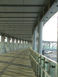 高松港からは次々に連絡船が出入りしていた。この四国フェリーは宇野港に向かうのだろうか。 また、港にはこのような立派な歩廊が作られ、ここからの眺めも最高だ。 追記
