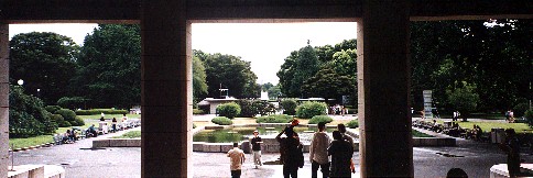 科学技術館を出て武道館に続く公園、緑がいっぱいだ 早々にここを出て、周辺の公園を抜け武道館の前に出る。明日は終戦記念日とのことで、