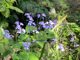 三鷹の街の中をこんな川が流れていた。水の流れは少なかったが周辺はまるで森のようだった。 そして、川のほとりにはこんな可憐な花も咲いていた。(諸葛菜の花) ![]()