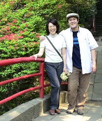 井の頭恩賜公園は広大な敷地を有する公園だ。公園の中には大きな池がある。新緑が池に映えてとてもきれいだった。 その池の一角に弁財天をお祀りした社がある。その近くに架かった橋の上で親子仲良く。 ![]()