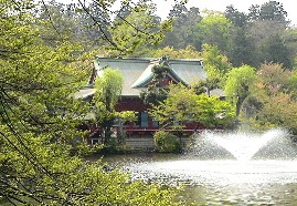 季節だった。その新緑が水に影を落としてとてもきれいだった。園内には弁天様がまつられていた。