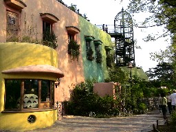 公園を抜けると吉祥寺へ続く。ここは若者の街のようだ。しゃれた感覚のお店が軒を連ねている。 そして街角には開放的な喫茶店があった。ここで私達はひとときを過ごし、三鷹の森ジブリ美術館へ向かった。 ![]()