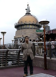左はディズニーへ遊びに来た人達が利用しているホテルが集まったところ。 ディズニーシーの入口ゲートを抜けると大きな地球が吹き上げる水の上に浮いていた。 ![]()