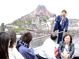ベニスのゴンドラに似たボートはゆっくりと水路を進む。その間に舳先に立った若者の話が笑いを誘う。 乗り合わせたお客さんを退屈させない楽しい会話だ。 そして、アメリカンウオーターフロントでは、出港前のコロンビア号が停泊していた。 その前でミッキーマウスやドナルドダックなど、ディズニーの人気者達が繰り広げる華やかなショーが行われていた。 山中湖と富士山