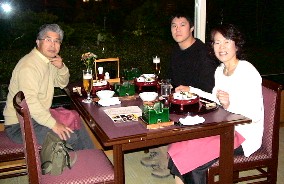 この日、山中湖周辺は雨だった。雨に濡れたXIV山中湖の玄関口。 そして、親子水入らずの夕食、今夜のメニューはXIV自慢の日本料理だった。 翌朝は外が明るくなって目が覚めた。カーテンを開けると昨晩の激しい雨はすっかりやんでいた。そして