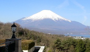 出てみると本館と私達の部屋がある建物の間から富士山と山中湖が一望出来た。ホテルの女性従業員