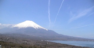 青空が広がっていた。その空に富士山目指して幾筋もの飛行雲が流れていた。