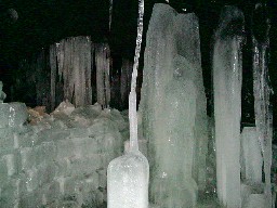 見る石筍のように氷柱が立っていた。この穴は、昔、氷の貯蔵庫としても使われていたらしい。風穴は、