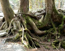 穴の周辺には溶岩に根を下ろした木々が繁茂して広い森になっていた。いわゆる青木ヶ原樹海である。