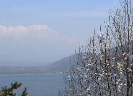 山中湖周辺では辛夷(こぶし)や桜が咲いていた。湖畔近くに下りた頃から少し雲が懸かり始めていた。 ![]()