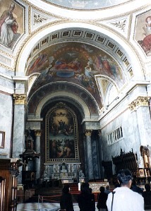 隣国スロヴァキアとの国境沿いにあるエステルゴム教会 川沿いのがけの上に建っている巨大な歴史的建造物 教会の中には極彩色の壁画が描かれている ![]()