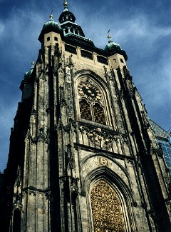 聖ヴィート大聖堂の重厚な外観と建物の中のステンドグラス ![]()
