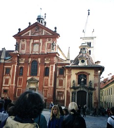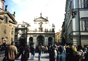 プラハ城と広場を挟んで向かいにある建物 壮大なプラハ城と聖ヴィート教会の建物群、今日も、お城は政務等に使用されているようです。