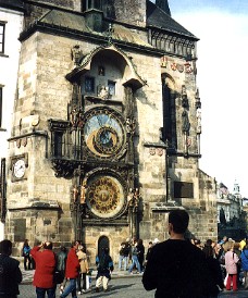 プラハの中心地とも言うべきイジー広場に面したところ 建物の博覧会とも言われるほど各時代を代表するような様式の建物が並んでいる 中央は聖イジー教会、左は有名な旧市庁舎のからくり時計 私達日本人観光客には一見同じように見える街並みですが、よく見るとプラハとブタペストとは