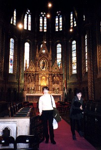 古い建築物であるマーチャーシュ教会と教会の中、壮麗な装飾が中にも外にも施されている 街の中には、重厚な彫刻を施した建物が大変たくさん目に付きます。近代的な建物は最近建設