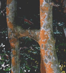 られた看板を幹の中に取り込んでしまったものなどです。この道が整備された時に取り付けられ注意書きですが、